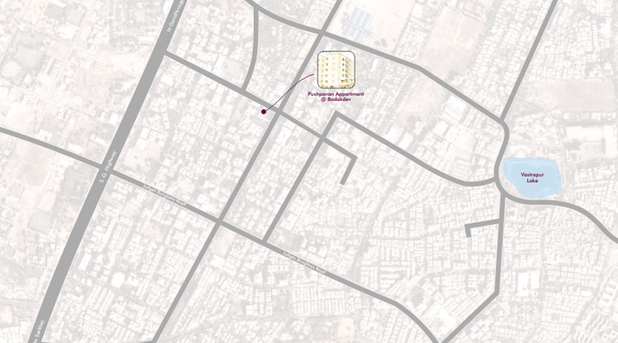 A STEP TOWARDS BETTER LIFE STYLE A cluster of three low rise apartment block sitting amidst fully developed neighbourhood Vastrapur. A compact, comfortable and decent residential unit represents right way of living. Inviting foyer, indivudual car parking, security cabin, intercom facility, cable T.V. are added facilities. Pancham is developed & constructed by renowned organization having many known projects to its credit in this area.